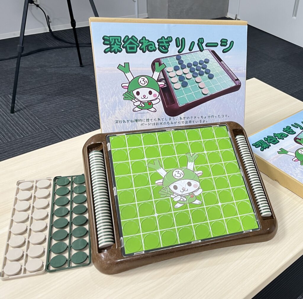 ★ 緑と白のコマは深谷ねぎ由来のセルロースから作られており、ボード部分には深谷産の米のもみ殻成分が含まれています。「深谷市のふるさと納税返礼品」としての販売も検討されています。
