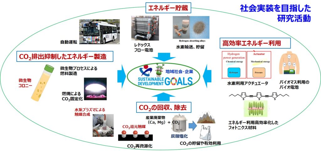 「先端的な技術革新による地域振興の実現」を目標に、2024年4月に開設された「クリーンエネルギー技術開発センター(センター長:本郷 照久 教授)」で行われている研究プロジェクトです。地域おこしと脱炭素社会を同時に実現する“脱炭素ドミノ”を牽引する社会実装研究を加速させるため、「バイオマス」・「脱炭素技術開発」・「電池技術開発」の3つの研究部門があり、本学科からも多くの教員が参画しています。→ https://www.sit.ac.jp/clean_energy/