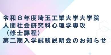 令和8年度埼玉工業大学大学院人間社会研究科心理学専攻(修士課程)第二期入学試験説明会のお知らせ