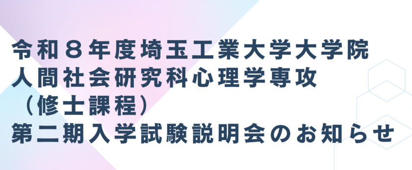 令和8年度埼玉工業大学大学院人間社会研究科心理学専攻(修士課程)第二期入学試験説明会を以下の日程で実施いたします。